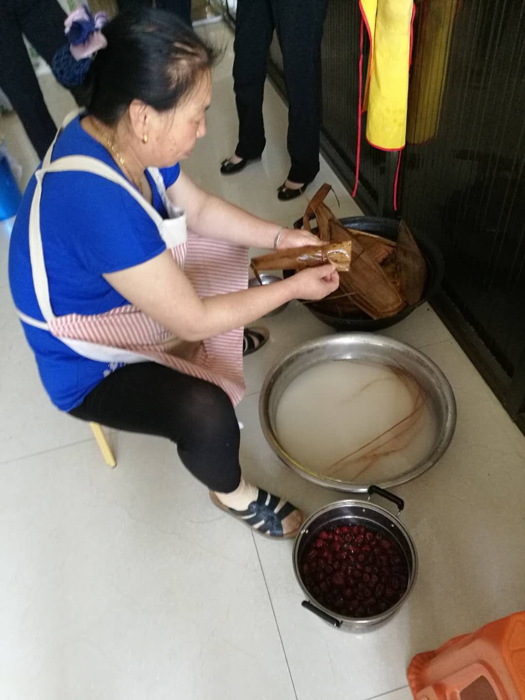 端午佳節期間,廚房大姐在精心為公司員工包粽子