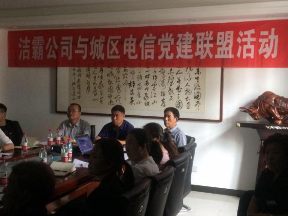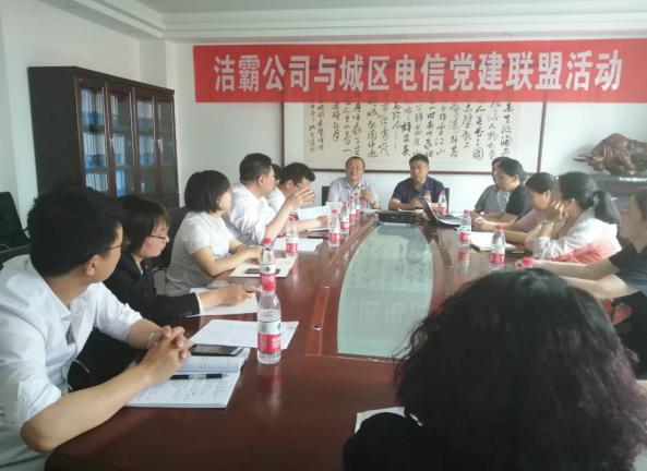 5月27日下午,潔霸公司黨支部與城區電信東城西城聯(lián)合黨支部開(kāi)展了黨建聯(lián)盟活動(dòng)。首先雙方對公司的概況以及黨支部成員的構成做了詳細的介紹?偨(jīng)理程晉軍及支部書(shū)記李山虎對城區電信公司黨支部成員的到來(lái)表示了熱烈的歡迎。