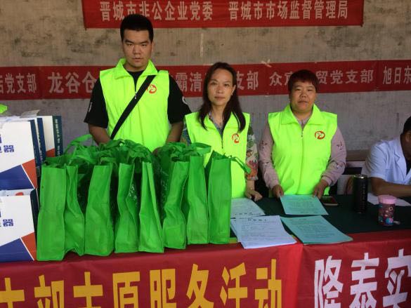 此次活動(dòng)由晉城市市場(chǎng)監督管理局和市非公企業(yè)黨委領(lǐng)導帶隊,非公黨委下屬的潔霸清潔、神利電器、隆泰實(shí)業(yè)、龍谷倉等九個(gè)支部的黨員志愿者30余人參加,活動(dòng)旨在關(guān)愛(ài)弱勢群體,提供志愿服務(wù),弘揚黨員志愿者精神,切實(shí)發(fā)揮文明單位的引領(lǐng)示范作用,送文化和健康下鄉,助力晉城市扶貧攻堅行動(dòng)。