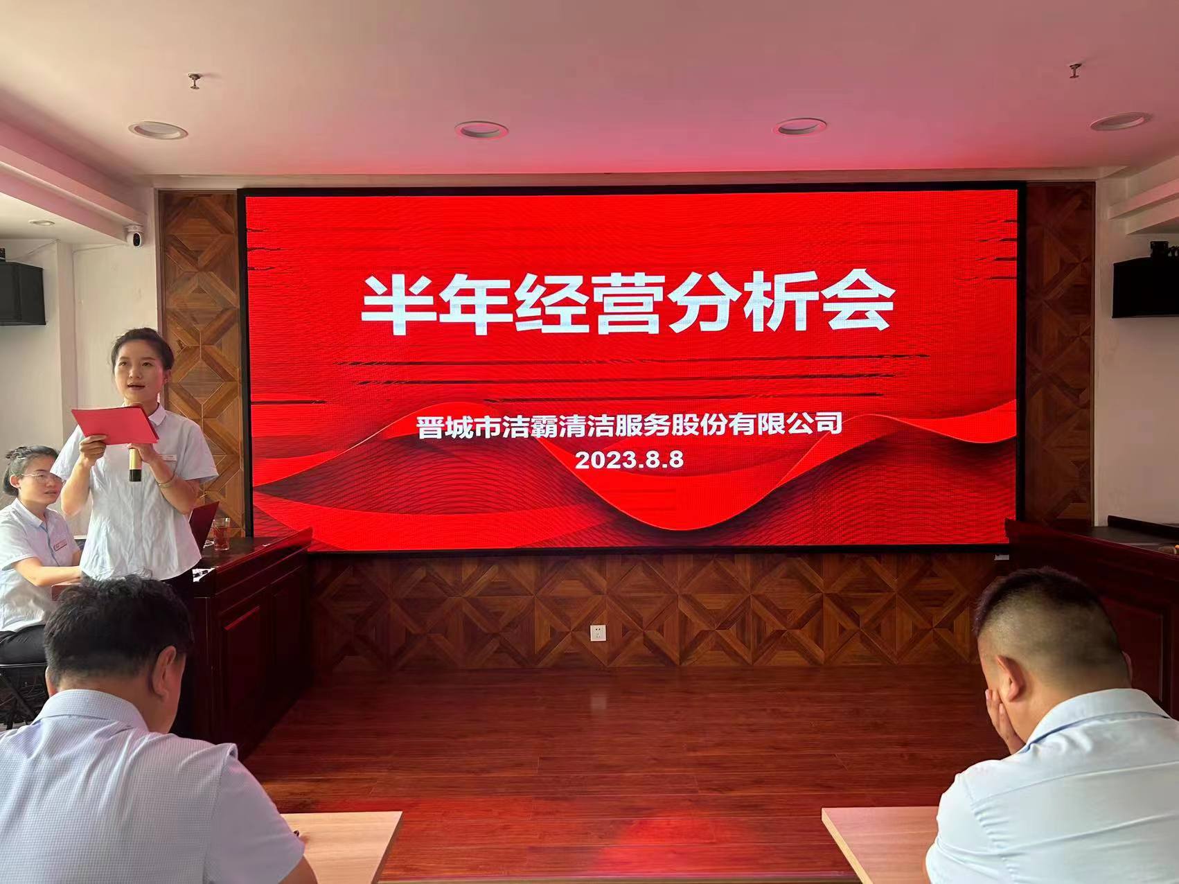 8月8日下午,晉城市潔霸清潔服務(wù)股份有限公司在黨群活動(dòng)中心召開(kāi)上半年經(jīng)營(yíng)分析會(huì )議,總結上半年經(jīng)營(yíng)運行情況,研判當前經(jīng)濟形勢,分析存在的矛盾和問(wèn)題,找準薄弱環(huán)節,研究制定應對措施和解決方案,并安排部署下半年的經(jīng)濟工作。公司總經(jīng)理程晉軍、副總經(jīng)理張永智、史志霞、張小梅出席會(huì )議,公司下屬各子公司、分公司經(jīng)理、各部門(mén)負責人及主管以上人員參加會(huì )議。