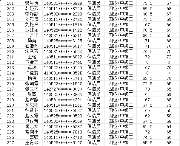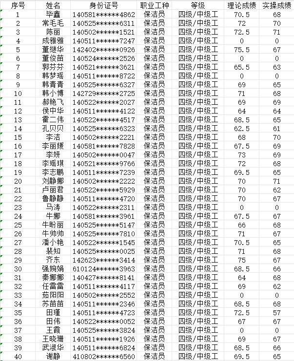 晉城市潔霸清潔服務(wù)股份有限公司職業(yè)技能等級認定中心現將2024年2月4日認定人員成績(jì)公示如下: