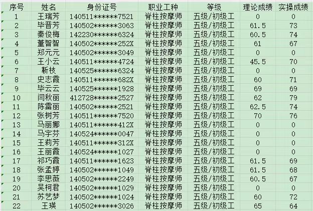 晉城市潔霸清潔服務(wù)股份有限公司職業(yè)技能等級認定中心現將2024年10月13日認定人員成績(jì)公示如下: