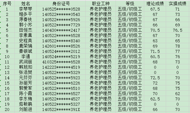 2024年10月14日第42批養老護理員初級認定人員成績(jì)公示