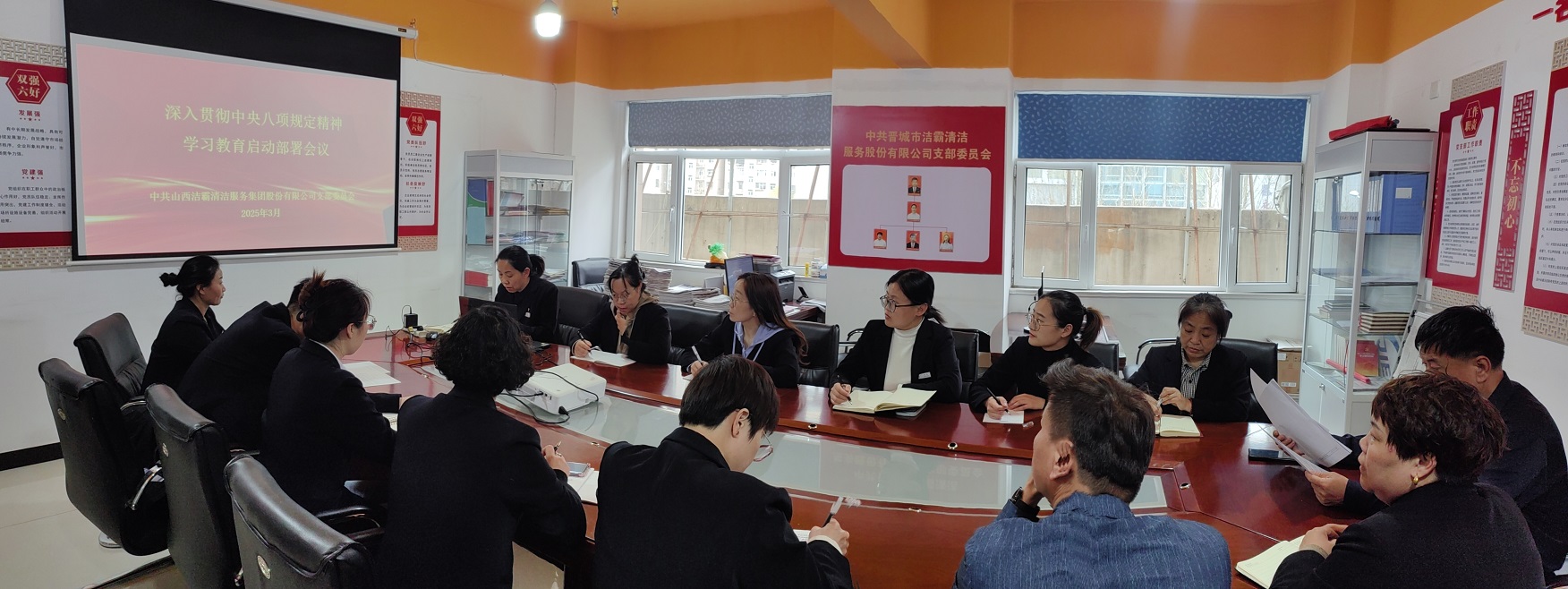 近日,山西潔霸清潔服務(wù)集團股份有限公司黨支部召開(kāi)專(zhuān)題會(huì )議,對公司開(kāi)展深入貫徹中央八項規定精神學(xué)習教育進(jìn)行部署。支部書(shū)記程晉軍主持會(huì )議并講話(huà)。