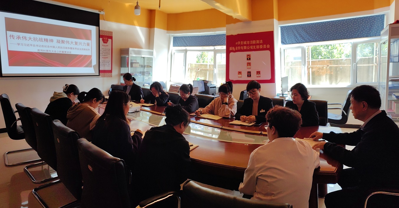 為紀念中國人民抗日戰爭暨世界反法西斯戰爭勝利80周年,弘揚偉大抗戰精神,9月20日,集團黨支部組織開(kāi)展學(xué)習習近平總書(shū)記在紀念中國人民抗日戰爭暨世界反法西斯戰爭勝利80周年大會(huì )上的重要講話(huà)專(zhuān)題黨課活動(dòng)。支部書(shū)記程晉軍主講,支部黨員和入黨積極分子17人參加本次學(xué)習活動(dòng)。