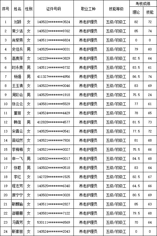 山西潔霸清潔服務(wù)集團股份有限公司職業(yè)技能等級認定中心現將2025年11月2日認定人員成績(jì)公示如下: